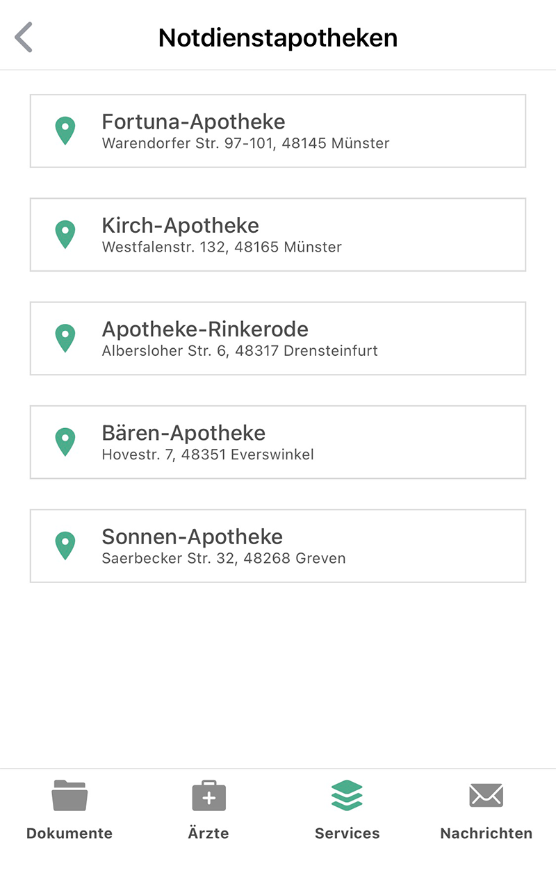 Egal ob PatientInnen einen ärztlichen Notdienst oder die nächste Notdienstapotheke suchen – sie werden optimal informiert.
